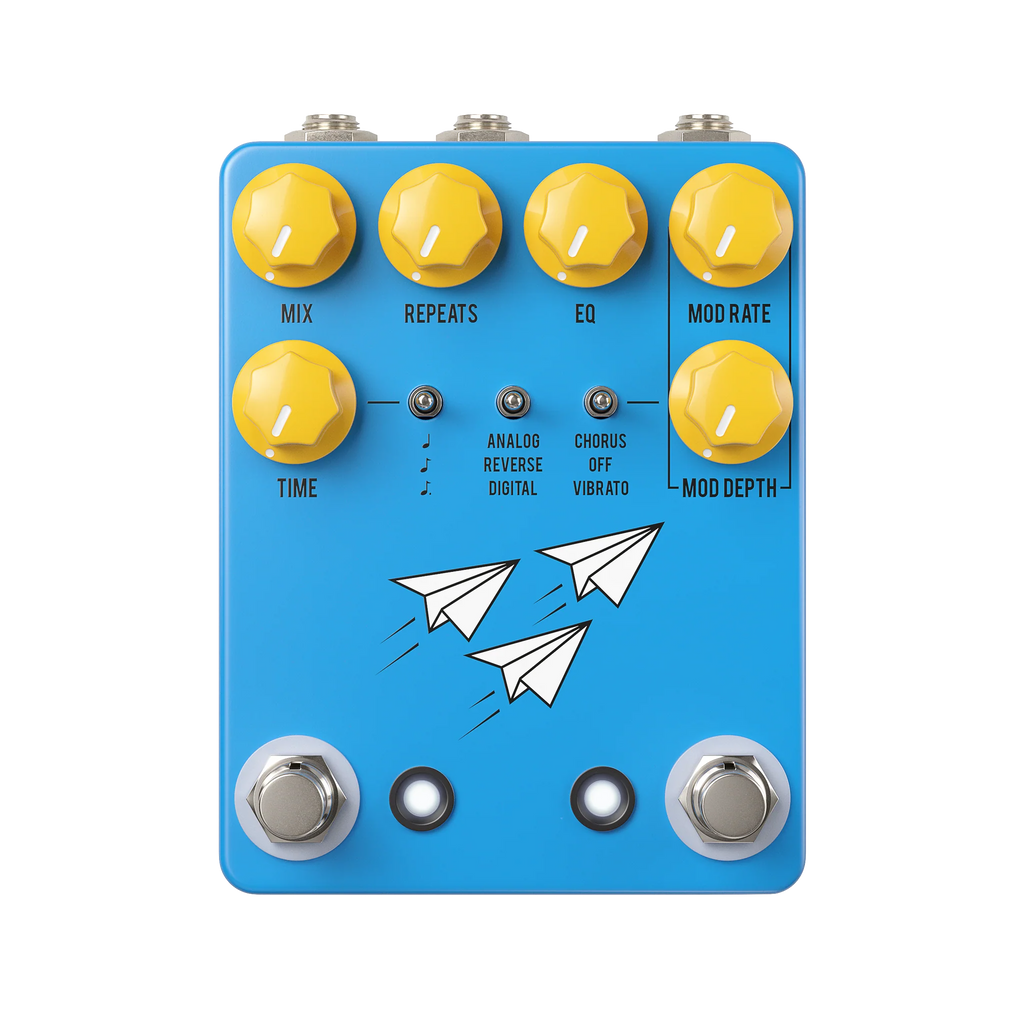 The JHS Pedals Flight Delay was made with one goal in mind: to be everything you need in a delay and nothing you don’t. In a world full of complex effects pedals, we worked hard to bring you the opposite - a beautifully simple stompbox that combines the most essential delay types with the features that matter. With three modes (Analog, Reverse, and Digital) inspired by my all-time favorite delays - EHX Memory Man, Boss DD-5, and Line 6 DL4 “Reverse Mode” - the Flight Delay is familiar, inspiring, and versatile enough for players in any genre. If you are tired of delay pedals that require frustrating menu diving to find the sound you want, endless scrolling on option screens, and complicated user interfaces, look no further!