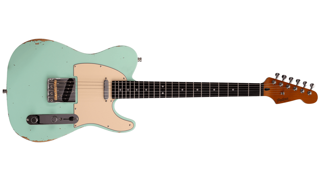 Aged nitrocellulose over Paulownia shows honest wear: checking, fading, character where it would naturally develop. The satin roasted maple neck with rosewood board feels comfortable from day one. Stainless steel jumbo frets won’t wear out. Custom-wound Alnico V pickups cut through without harshness. Locking tuners stay put. Luminous side dots for visibility when it matters.